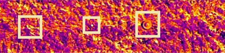 оптические изображения, которые за счет высокой детальности и контрастности позволяют выявить следы от взрывов, указывающие на возможные места нахождения мин;