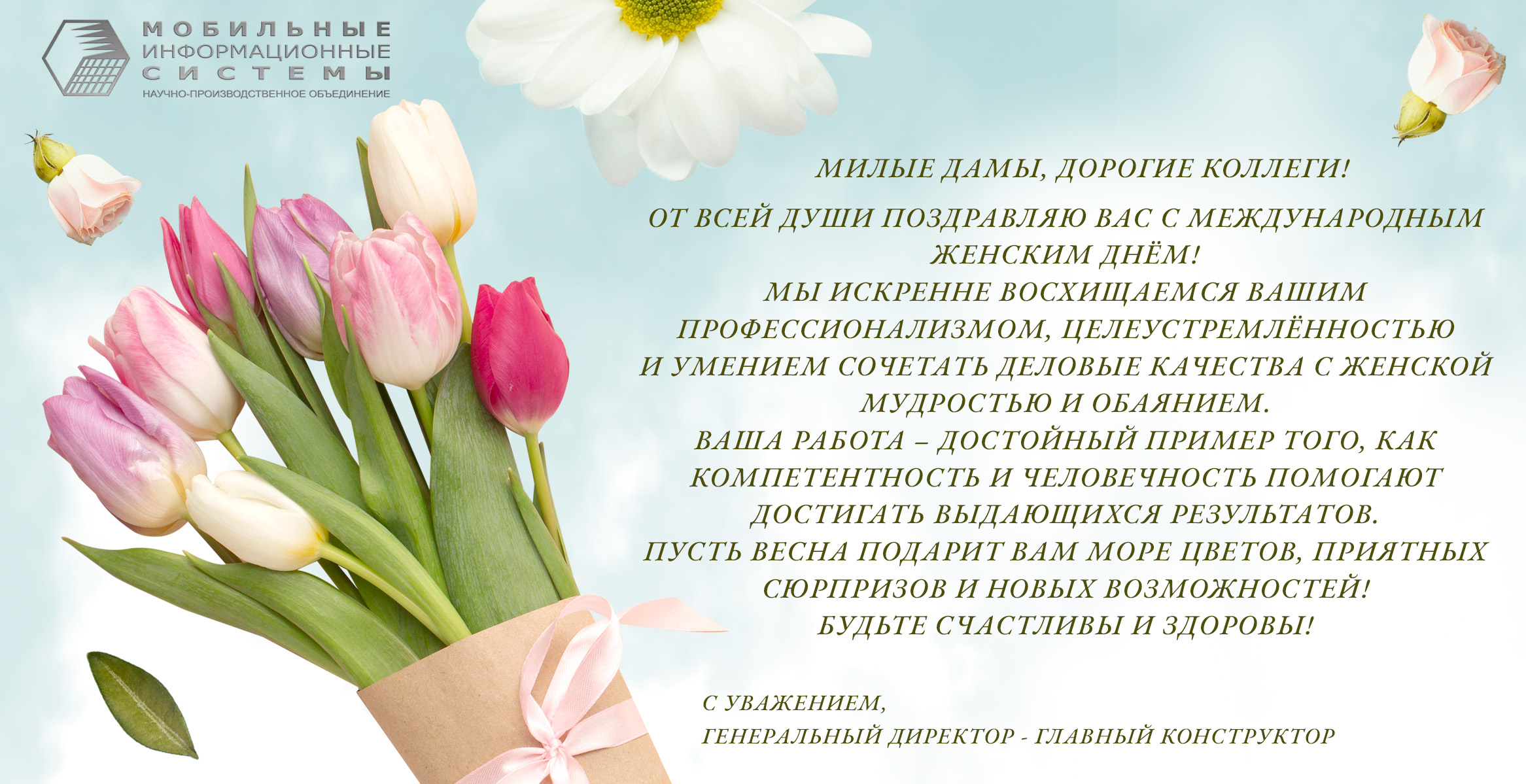 Руководство АО НПО «Мобильные Информационные Системы» от всей души поздравляет милых дам с Международным женским днём!